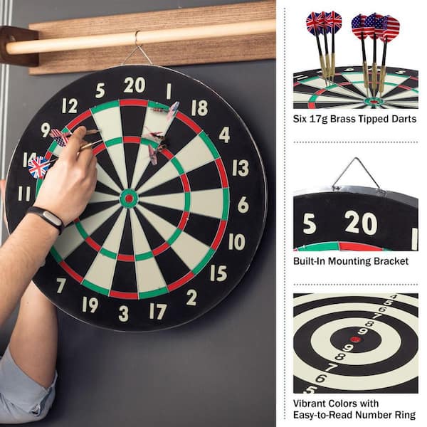 Dart Board Game Set with Six 17 g Brass Tipped Darts