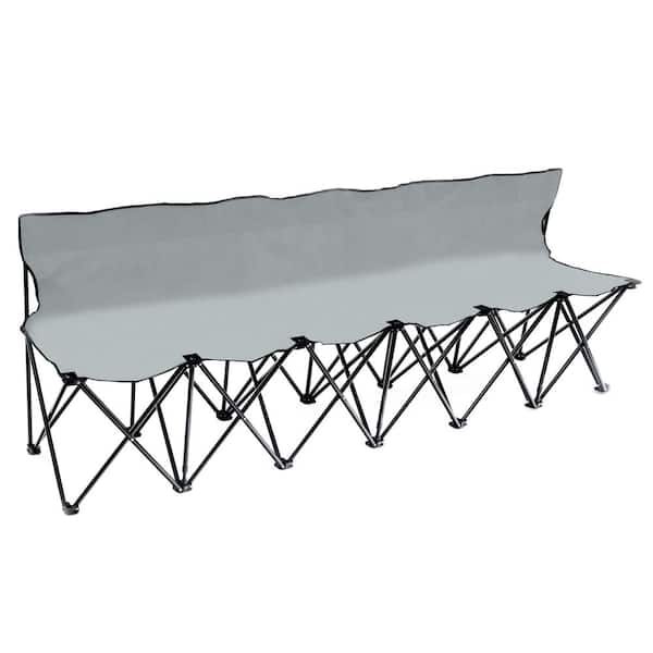 Portable 6-Seater Folding Team Sports Sideline Bench with Back (Grey)