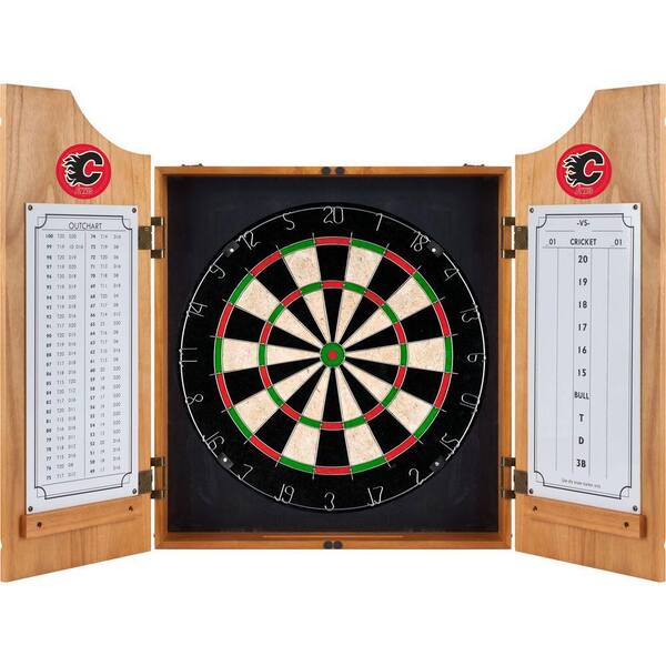 NHL Calgary Flames Wood Finish Dart Cabinet Set