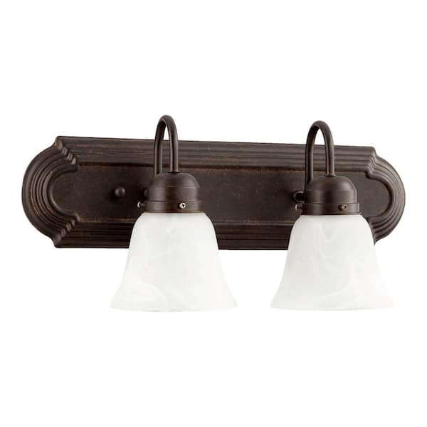 Traditional 18 in. W 2-Lights Toasted Sienna Vanity Light with Faux Alabaster