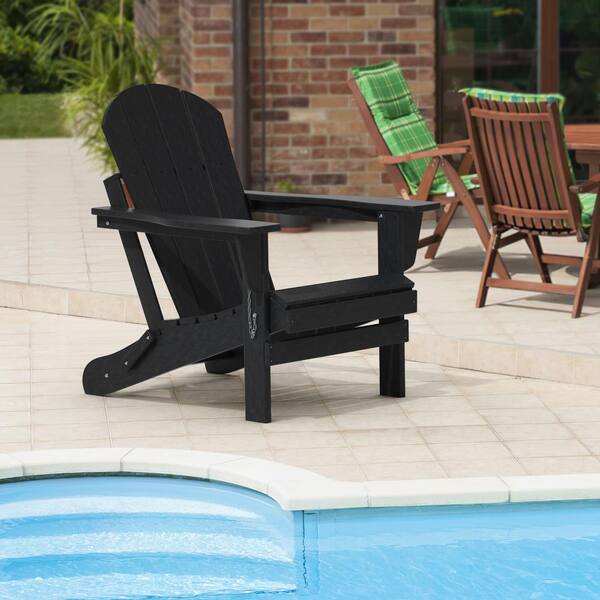 Traditional Curve Back Black Folding HDPE Resin Wood Outdoor Adirondack Chair