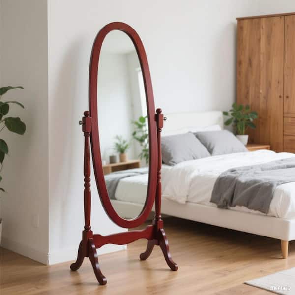 Traditional Queen Anna Style Red 22.5 in. W x 59.25 in. H Red Oval Wood Full Length Mirror for Living Room and Bedroom