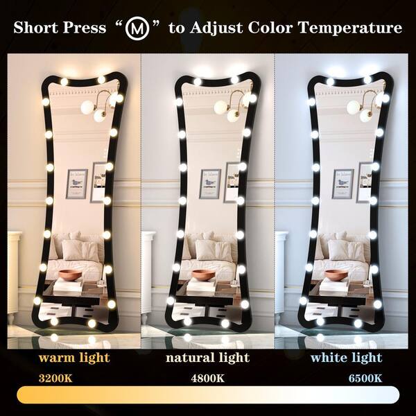 Black 24 in. W x 63 in. H Rectangle LED Glass Full-Length Framed Mirror