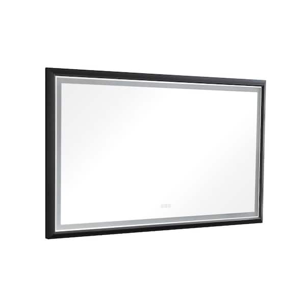 Black 36 in. W x 60 in. H LED Rectangle Metal Framed Wall Mirror