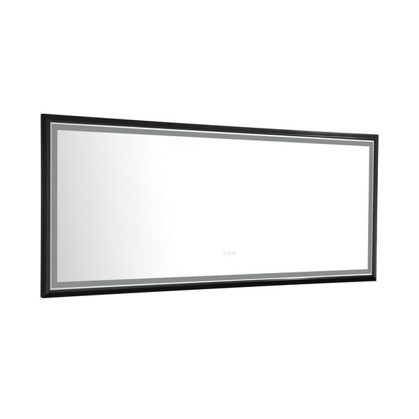 Black 38 in. W x 88 in. H LED Rectangle Metal Framed Wall Mirror