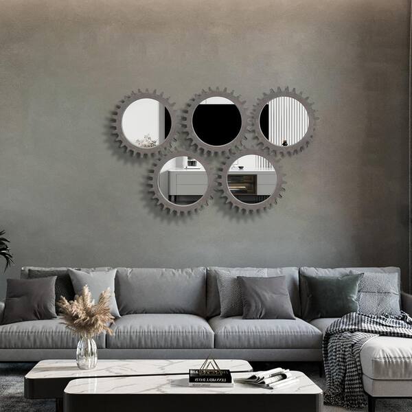 Brown 17 in W x 17 in. H Round Wood Wall Framed Mirror