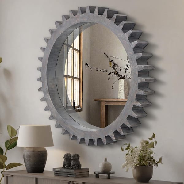Brown 42 in. W x 42 in. H Round Wood Wall Framed Mirror