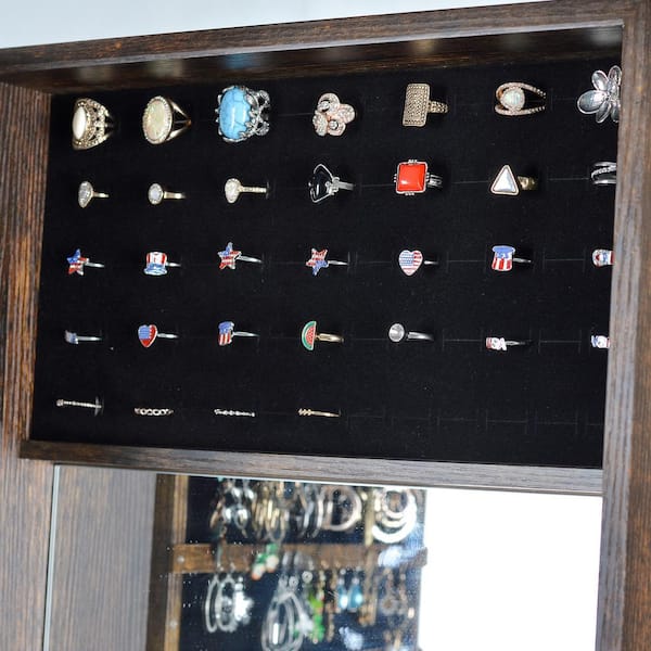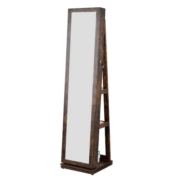 Gray 15.75 in. W x 60.15 in. H Rectangle Metal Full Length Mirror 360° Swivel Jewelry Cabinet