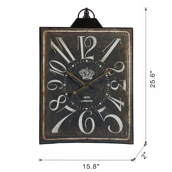 Large Vintage Black Rectangular Wall Clock with White Numerals, Home Decor Accent Clock