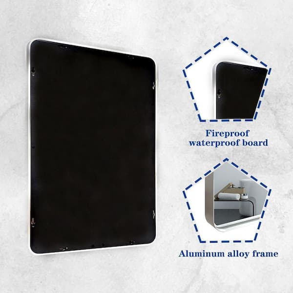 Silver 20 in. W x 30 in. H LED Rectangle Metal Framed Wall Mirror