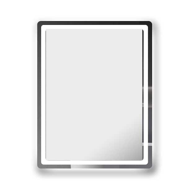 Silver 24 in. W x 32 in. H LED Rectangle Metal Framed Wall Mirror