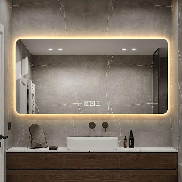Silver 24 in. W x 48 in. H LED Rectangle Metal Framed Wall Mirror