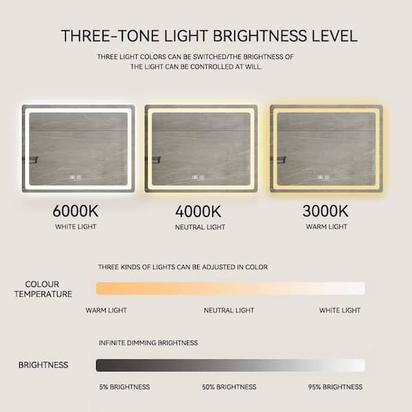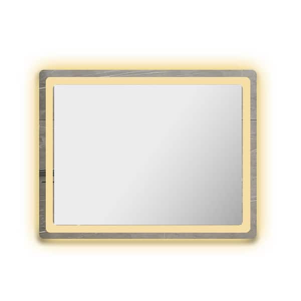 Silver 28 in. W x 36 in. H LED Rectangle Metal Framed Wall Mirror