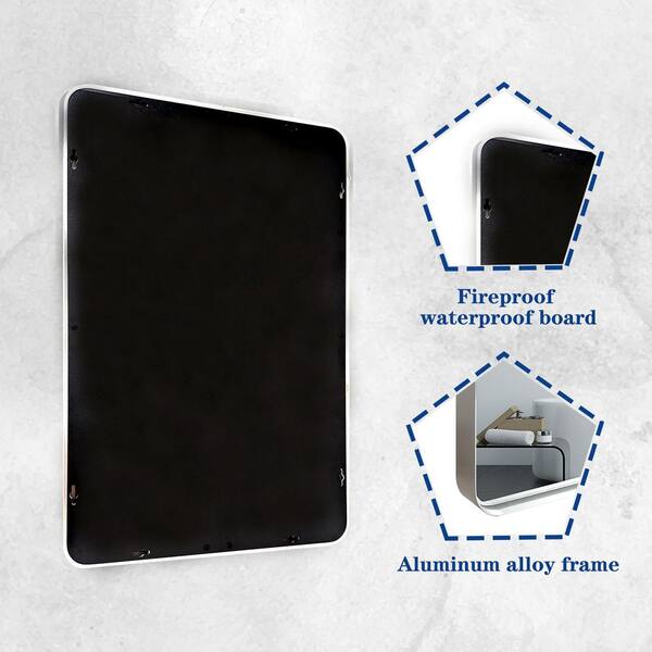 Silver 30 in. W x 40 in. H LED Rectangle Metal Framed Wall Mirror