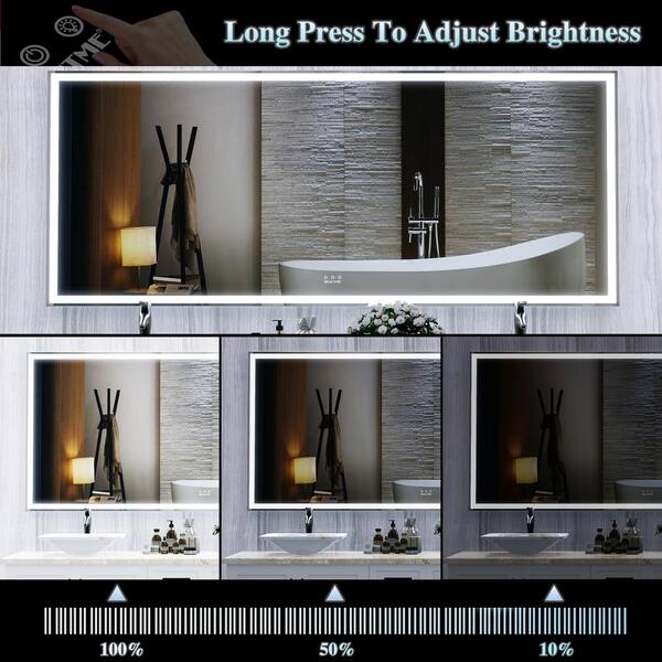 Silver 32 in. W x 72 in. H LED Rectangle Metal Framed Wall Mirror