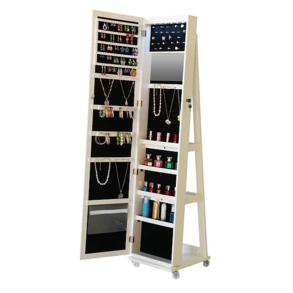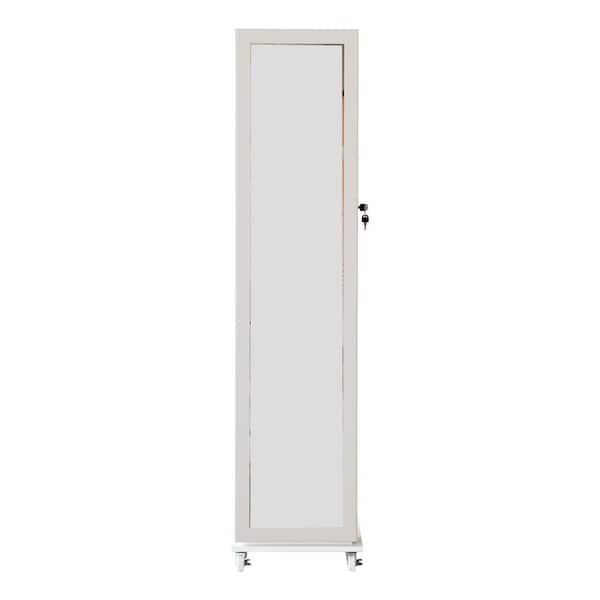 White 15.75 in. W x 64.96 in. H Rectangle Metal Full Length Mirror 360° Swivel Jewelry Cabinet