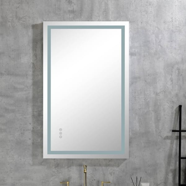 White 24 in. W x 32 in. H LED Rectangle Metal Framed Wall Mirror