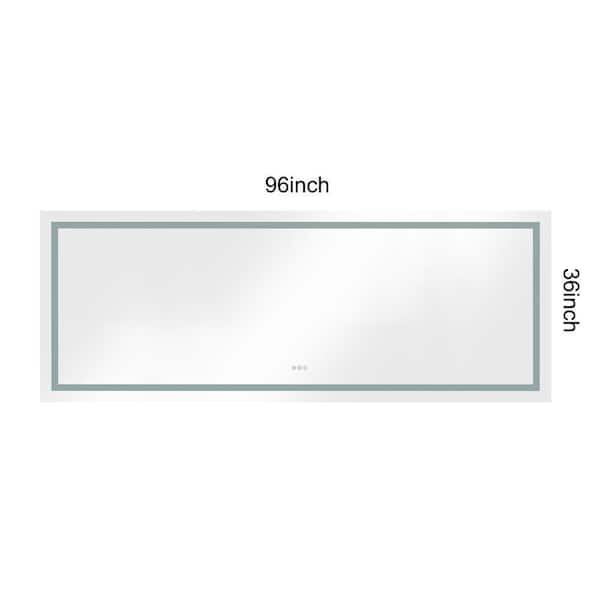 White 36 in. W x 96 in. H LED Rectangle Metal Framed Wall Mirror
