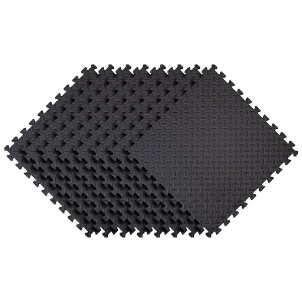 Black Diamond Plate 24 in. W x 24 in. L x. 43 in. Thick Foam Exercise Floor Tiles (8 Tiles/Case) (32 sq. ft. )