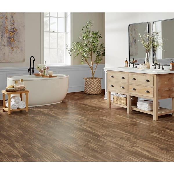 Chocolate Brown Acacia Wood 10 MIL x 12 ft. Wide x Cut to Length Waterproof Vinyl Sheet Flooring