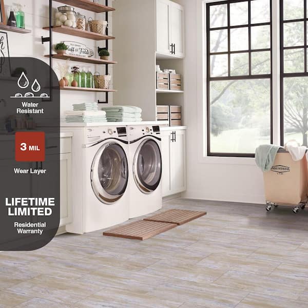 Golden Travertine 3 mil x 24 in. W x 12 in.L Peel and Stick Water Resistant Vinyl Tile Flooring (30 sq. ft.)