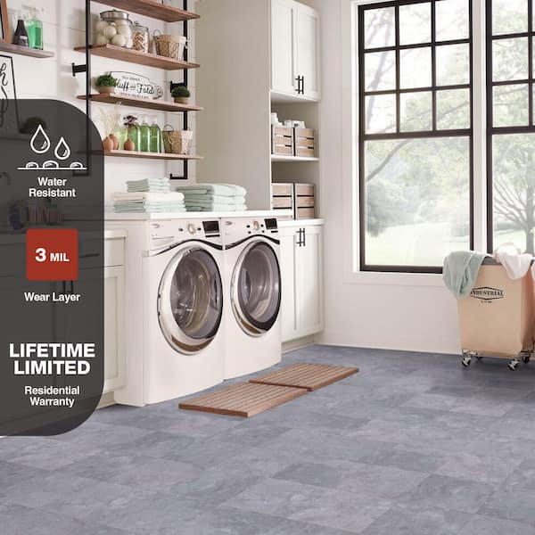 Smoke Slate 3 MIL x 12 in W x 12 in L Peel and Stick Water Resistant Vinyl Tile Flooring 30 sq ft