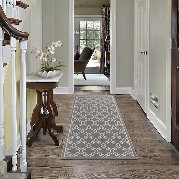 Trellis Grey 2 ft. x 5 ft. Trellis Polyester Accent Rug