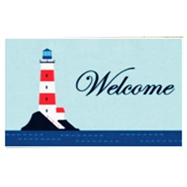Welcome Lighthouse Blue Multi 24 in. x 36 in. Coir Non-Slip Indoor Outdoor Door Mat