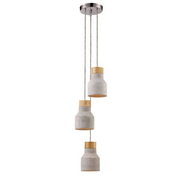 Wood and Concrete 3-Light 15 in. Chrome Indoor Pendant