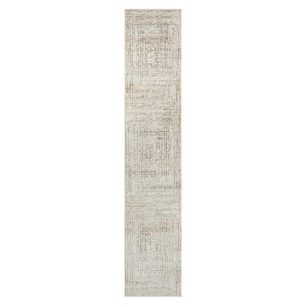 Transitional Distressed Beige/Gray 2 ft. x 8 ft. Bordered High-Low Textured Indoor Area Rug