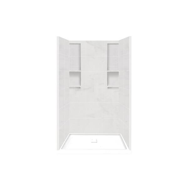 48 in. x 34 in. x 83 in. 4-Piece Direct-to-Stud Alcove Shower Kit with Base in White Carrara