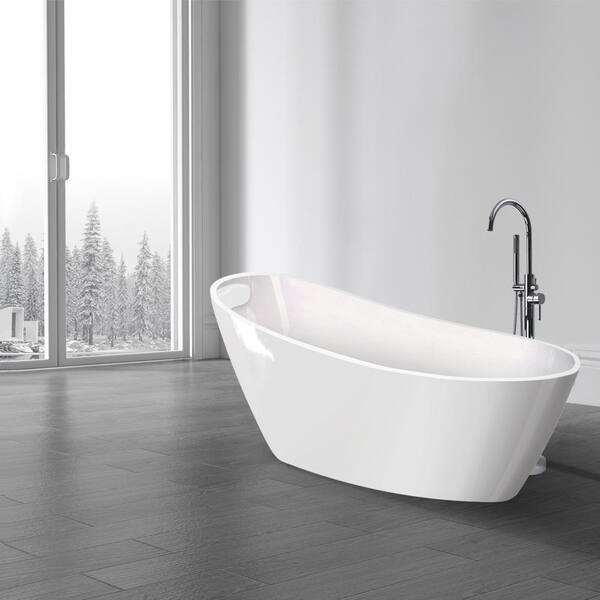 Aaliyah Grande 67 in. x 30.75 in. Soaking Bathtub with Reversible Drain in Gloss White/Polished Chrome with Faucet