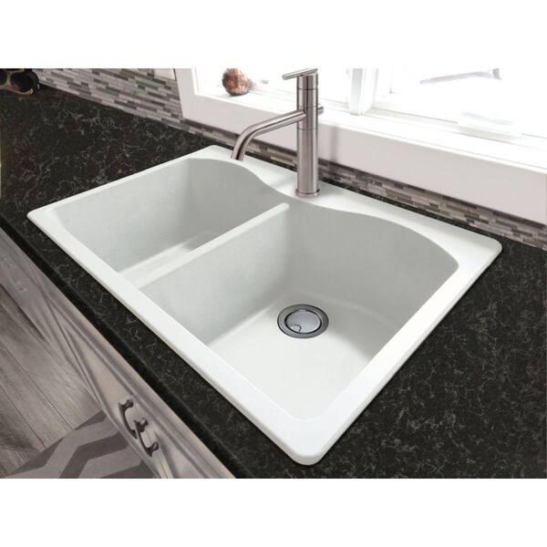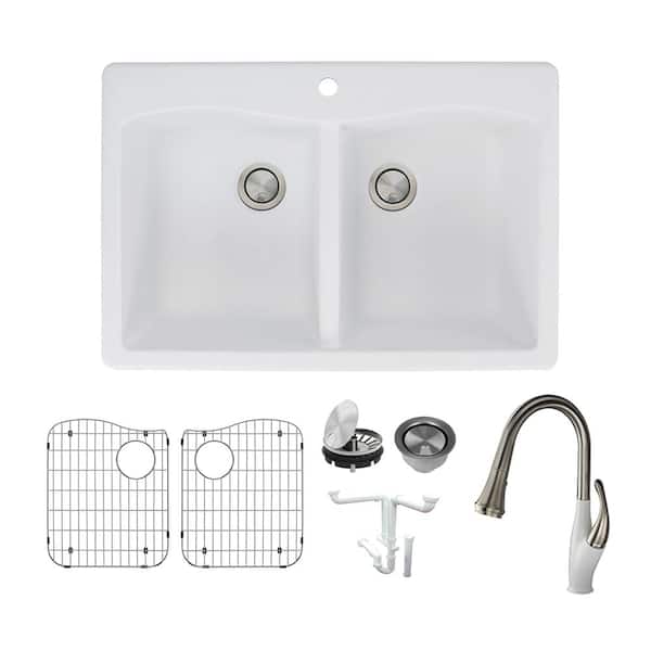 Aversa All-in-One Drop-in Granite 33 in. 1-Hole Equal Double Bowl Kitchen Sink with Faucet in White