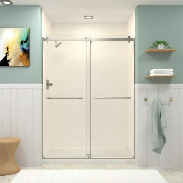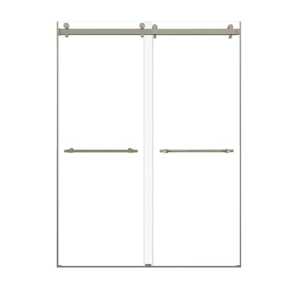 Brooklyn 60 in. W x 80 in. H Sliding Frameless Shower Door in Brushed Nickel with Clear Glass