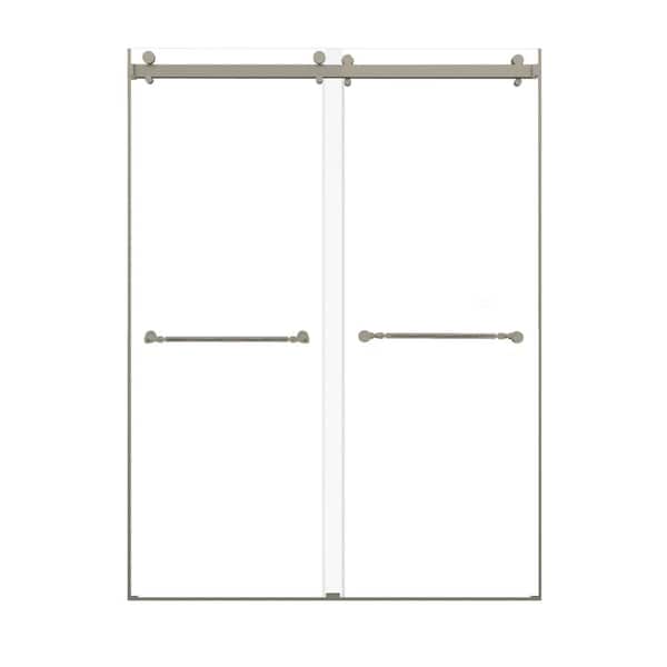 Brooklyn 60 in. W x 80 in. H Sliding Frameless Shower Door in Brushed Nickel with Clear Glass