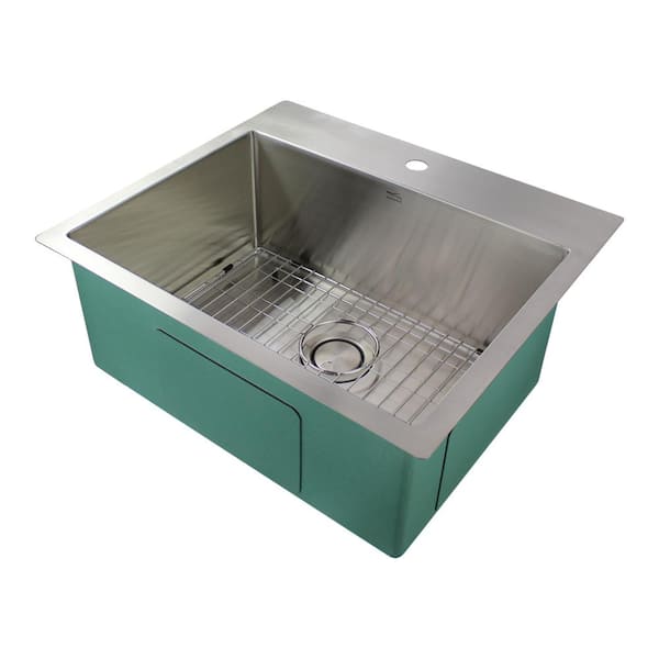 Diamond Dual Mount Stainless Steel 25 in. 1-Hole Single Bowl Kitchen Sink in Brushed