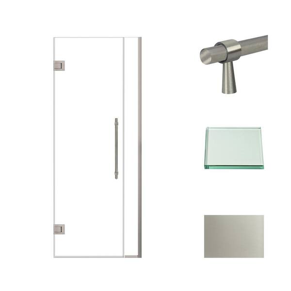 Elizabeth 30.5 in. W x 76 in. H Hinged Frameless Shower Door in Brushed Stainless with Clear Glass