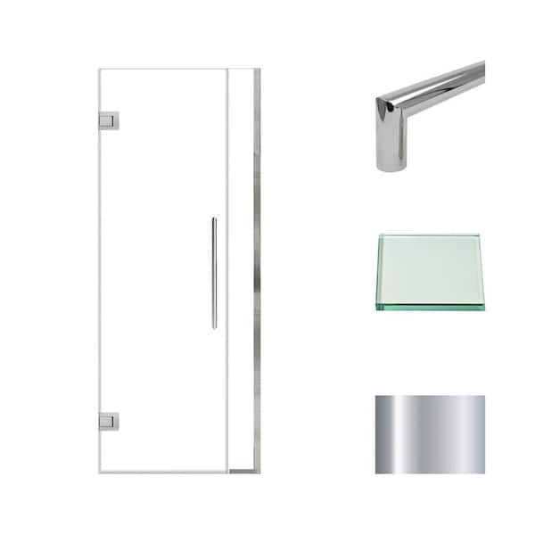 Elizabeth 31 in. W x 76 in. H Hinged Frameless Shower Door in Polished Chrome with Clear Glass