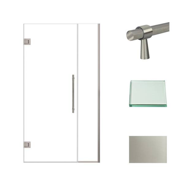 Elizabeth 41 in. W x 76 in. H Hinged Frameless Shower Door in Brushed Stainless with Clear Glass