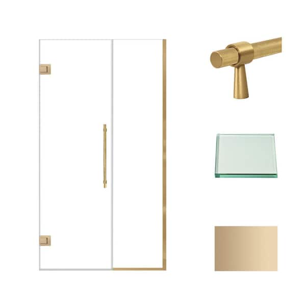 Elizabeth 42.5 in. W x 76 in. H Hinged Frameless Shower Door in Champagne Bronze with Clear Glass