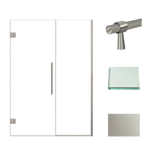 Elizabeth 53.5 in. W x 76 in. H Hinged Frameless Shower Door in Brushed Stainless with Clear Glass