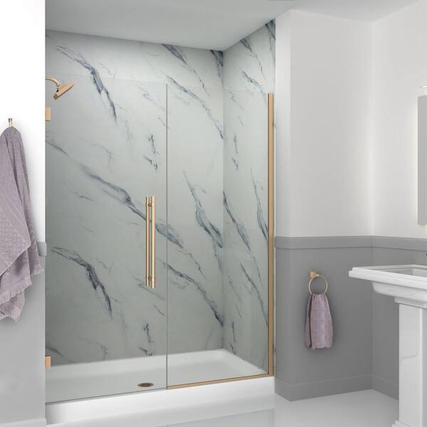 Elizabeth 59.5 in. W x 76 in. H Hinged Frameless Shower Door in Champagne Bronze with Clear Glass