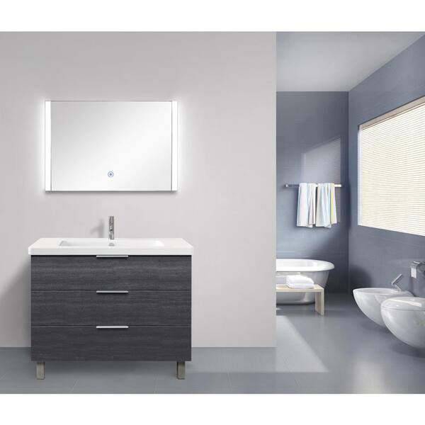 Ethan 35.43 in. W x 24.02 in. H Frameless Rectangular LED Light Bathroom Vanity Mirror in Silver