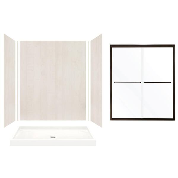 Expressions 32 in. x 60 in. x 72 in. Center Drain Alcove Shower Kit with Door in Bleached Oak and Bronze Hardware