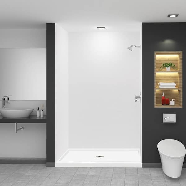 Expressions 32 in. x 60 in. x 96 in. Shower Kit with Extension and Center Drain in White