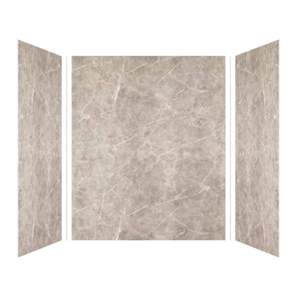 Expressions 48 in. x 60 in. x 72 in. 3-Piece Easy Up Adhesive Alcove Shower Wall Surround in Dover Stone