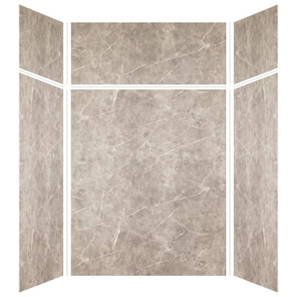 Expressions 48 in. x 60 in. x 96 in. 4-Piece Easy Up Adhesive Alcove Shower Wall Surround in Dover Stone