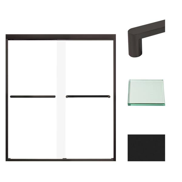 Frederick 59 in. W x 66 in. H Sliding Semi-Frameless Shower Door in Matte Black with Clear Glass