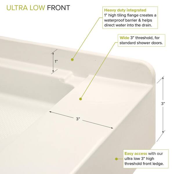 Linear 32 in. L x 60 in. W Alcove Shower Pan Base with Center Drain in Cameo