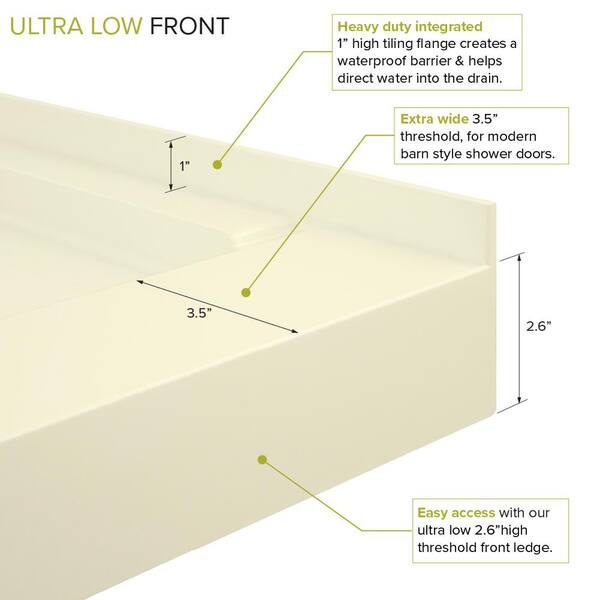 Linear 36 in. L x 36 in. W Single Threshold Alcove Shower Pan Base with a Center Drain in Biscuit
